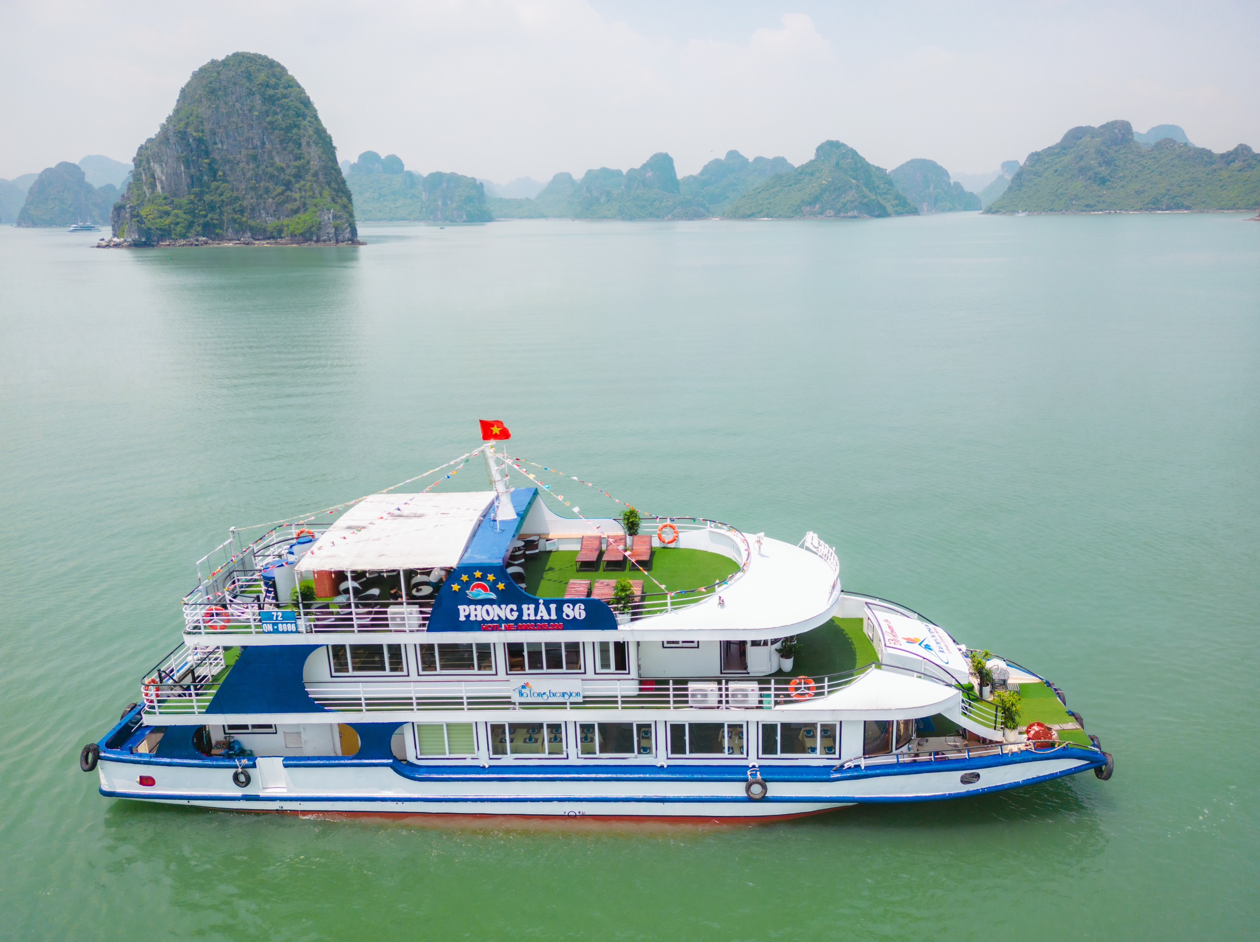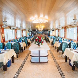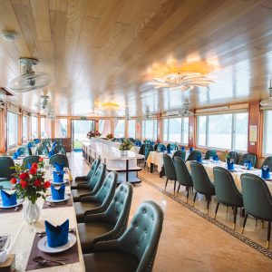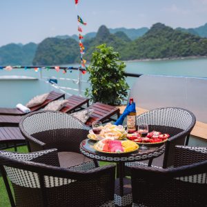 12:30: Enjoy Vietnamese lunch on the boat .While having lunch, the boat will pass by the beautiful scenery on both sides with thousands of limestone of Halong Bay