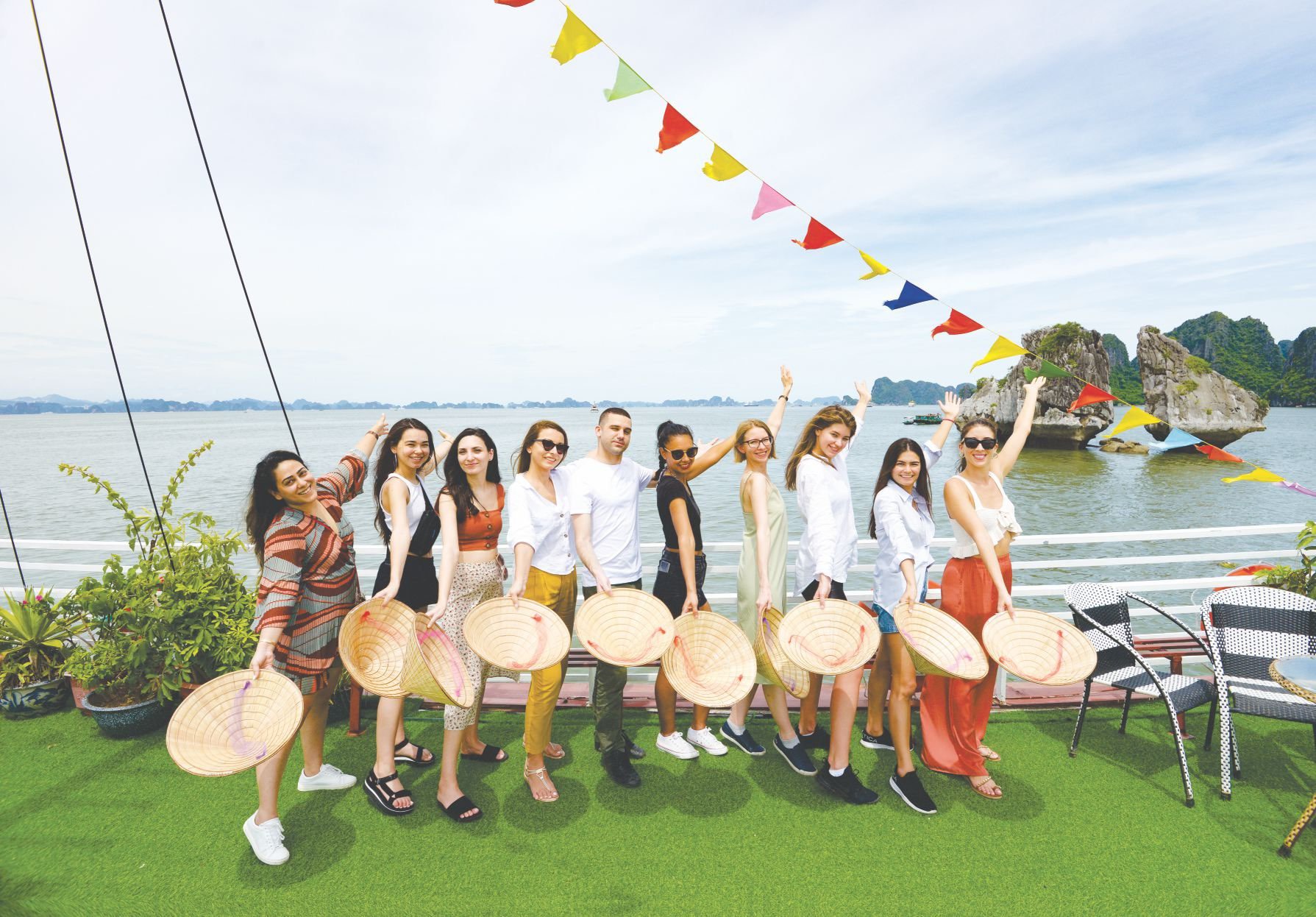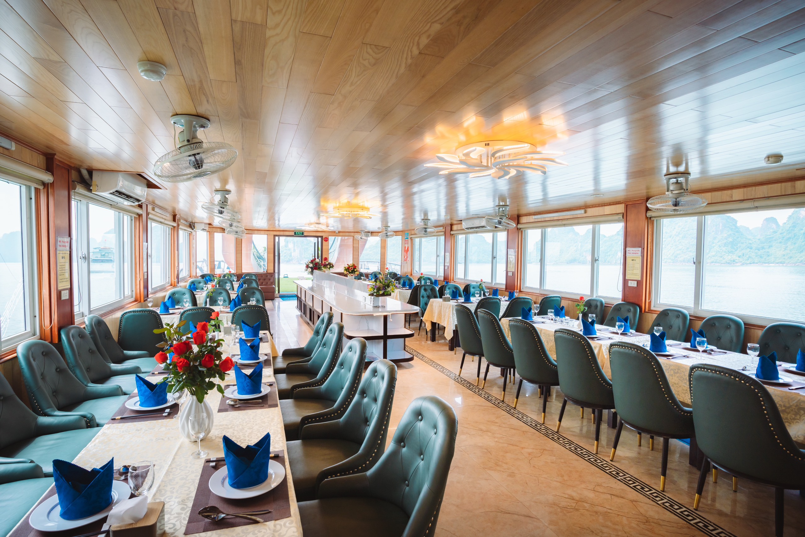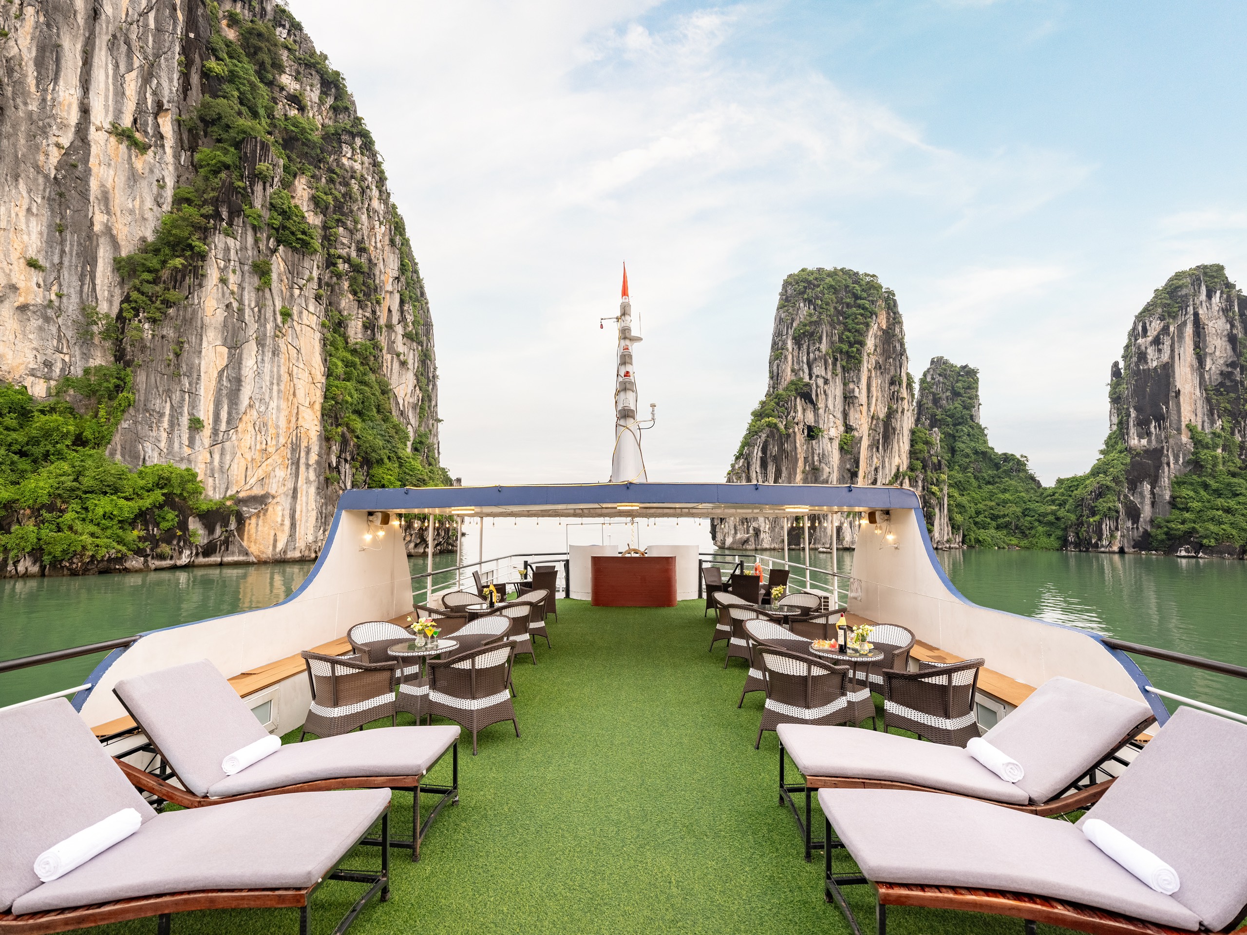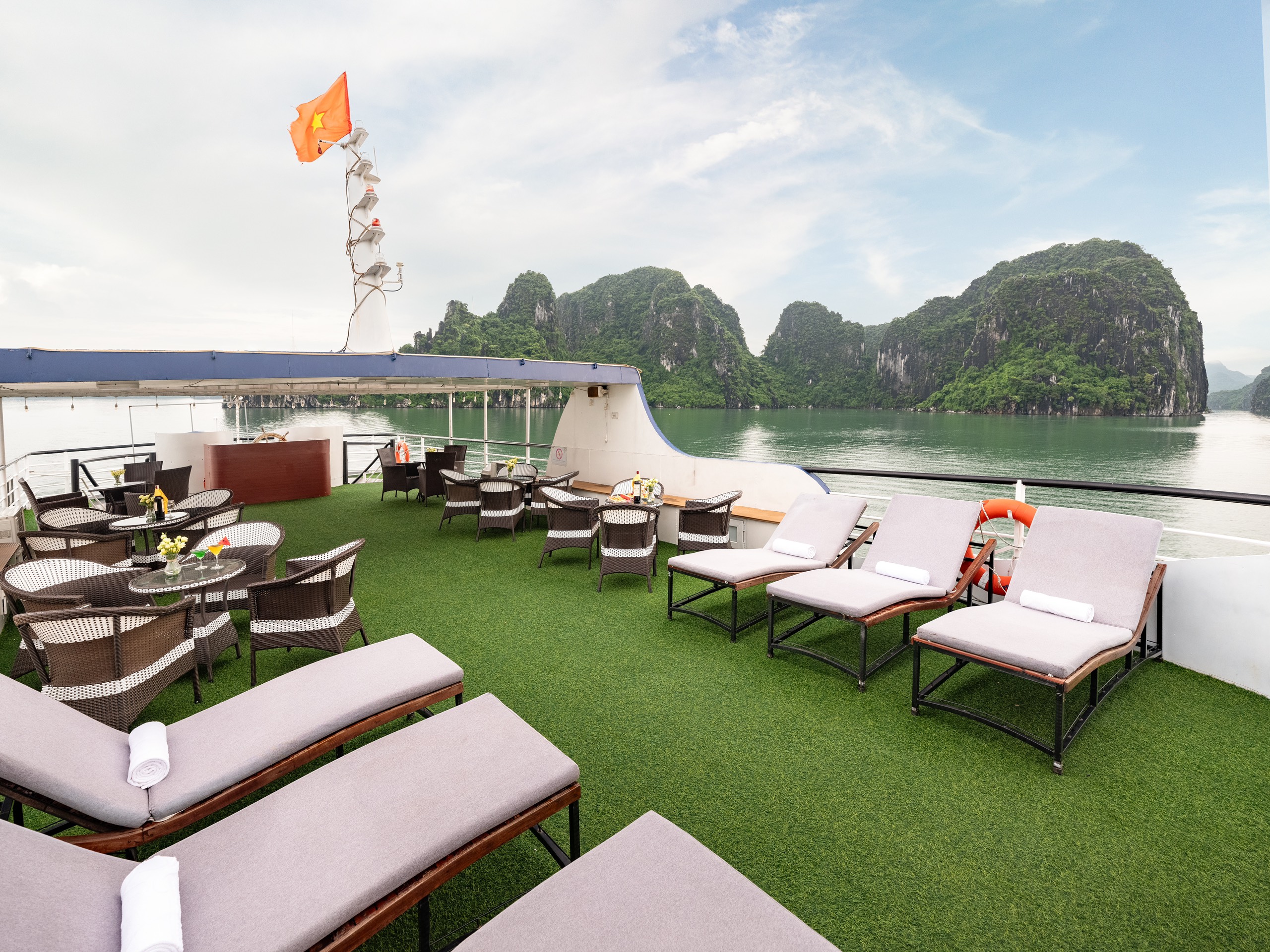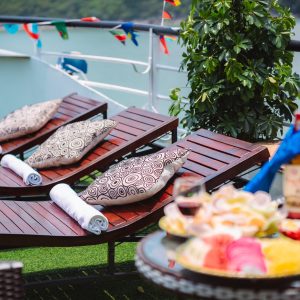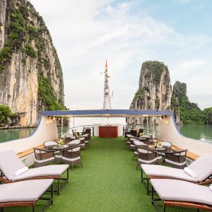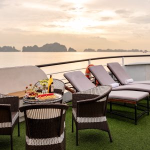 12:00: Arrive at Tuan Chau Harbor, get on Deluxe Cruise with our crew’s warm welcome